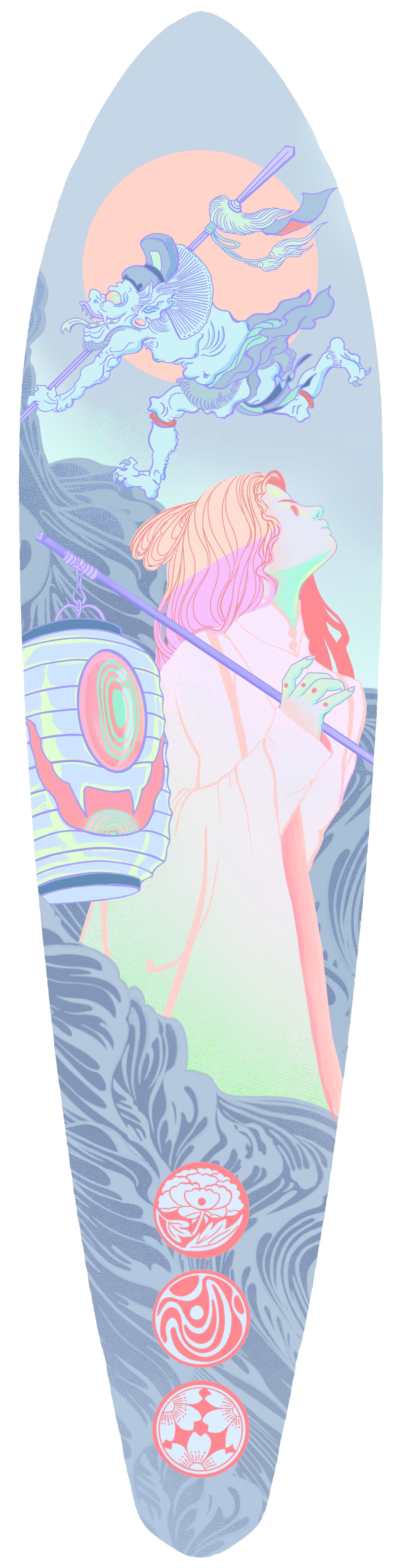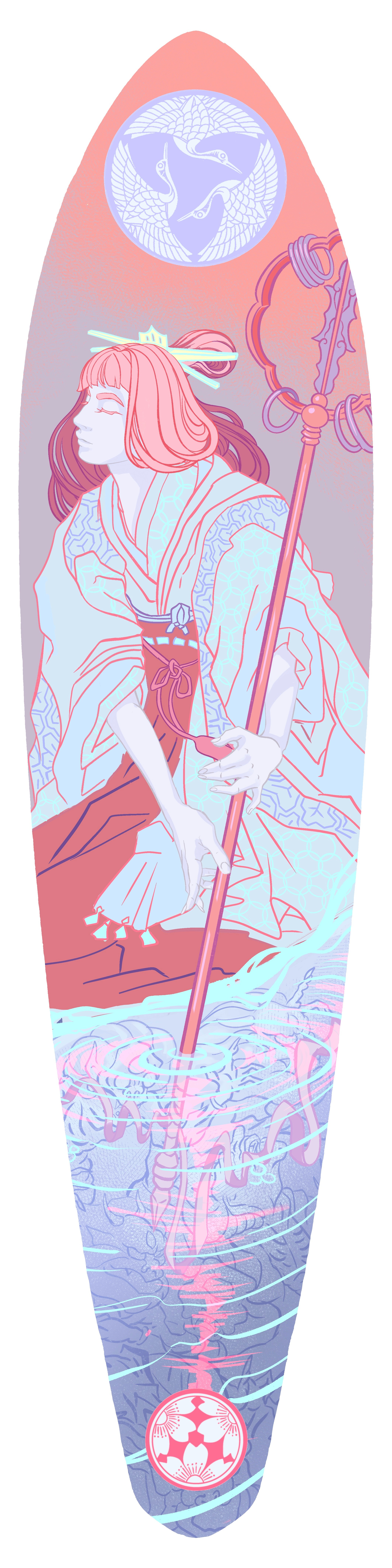 I’m currently working on a project that reimagines skateboards and surfboards as canvases for original artworks. I’ve created a series of illustrations designed to be printed, adhered to the boards, and then coated with resin. The goal is to transform functional objects into collectible, gallery-ready pieces that can be sold, exhibited, or enjoyed as unique art objects.