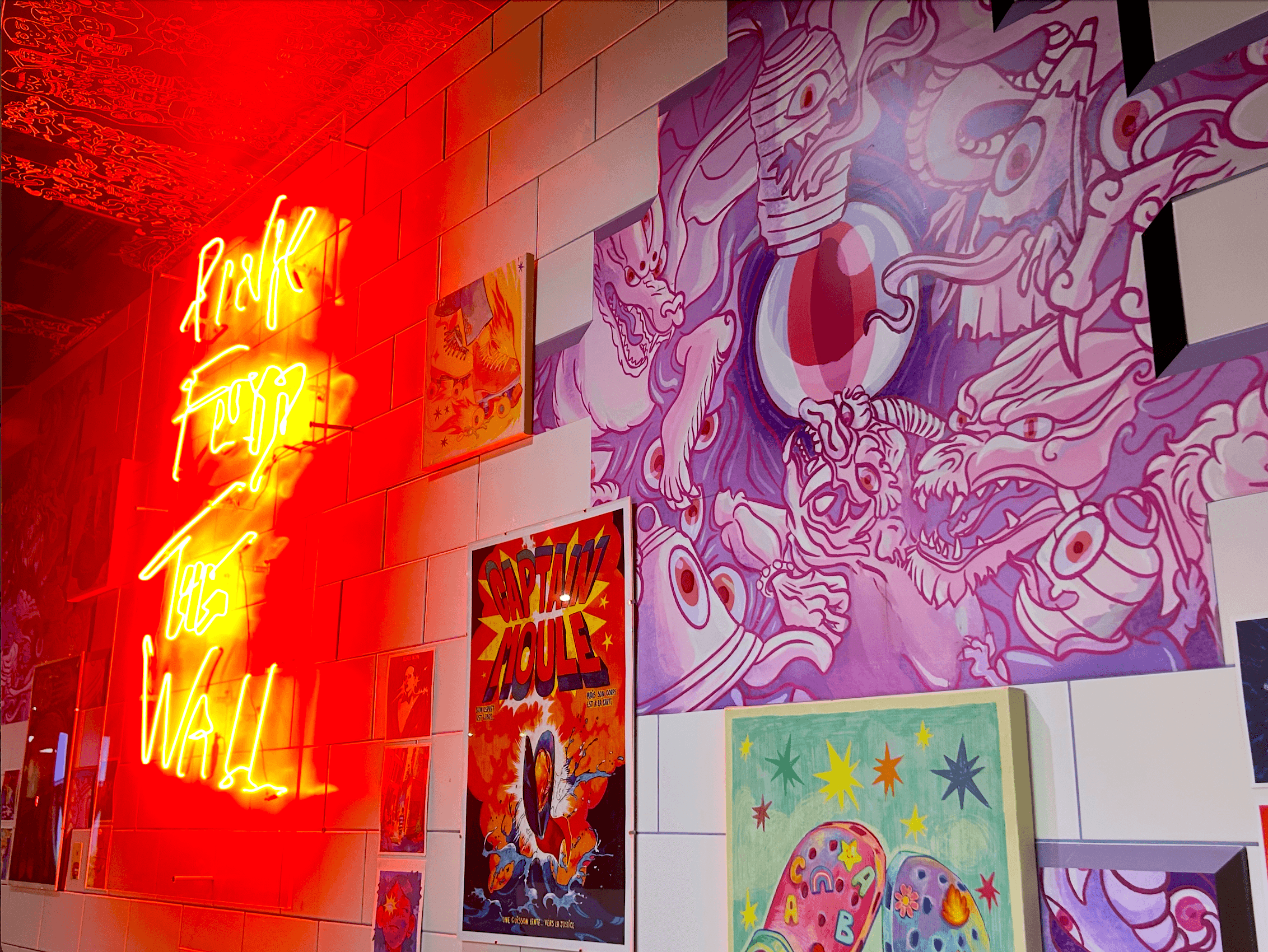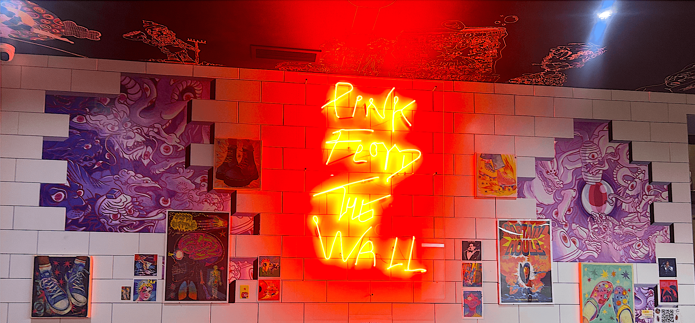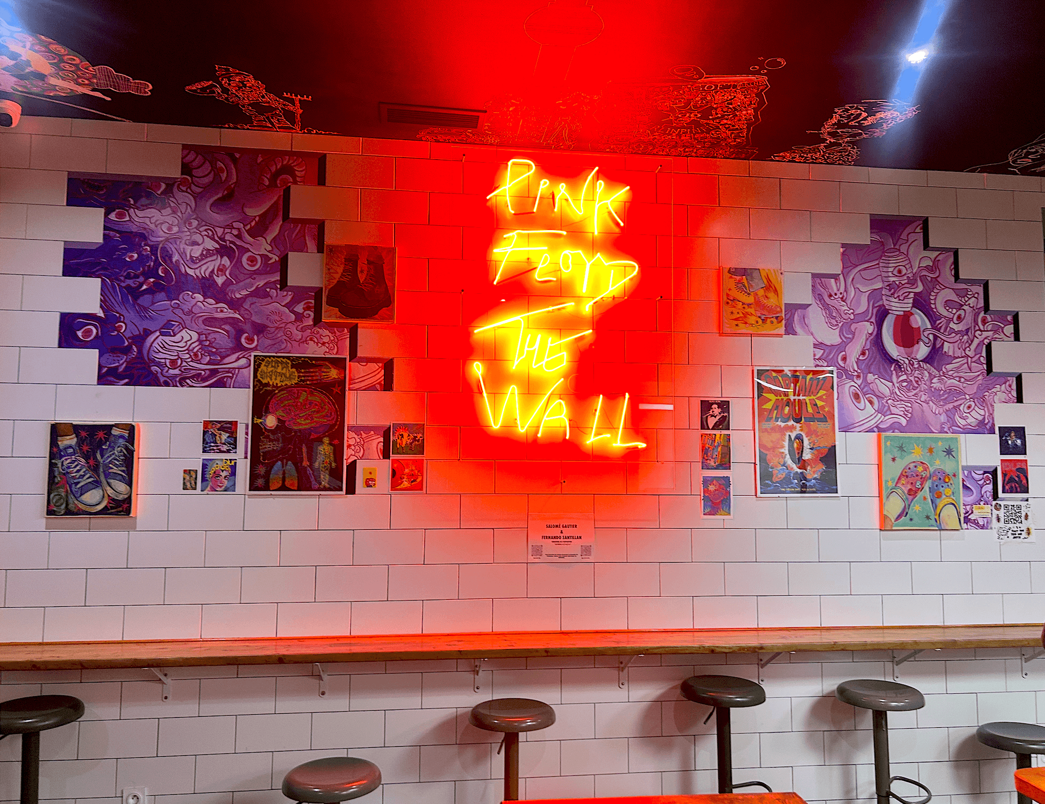 The Wall – Berlinpinpin Edition is a custom wall artwork inspired by Pink Floyd’s album The Wall, created for Berlinpinpin, a street-food style Berliner kebab restaurant in Montpellier. The owners wanted to reinterpret the iconic Pink Floyd wall using LEDs and a trompe-l’œil effect, where the bricks appear broken to reveal an artwork inside.