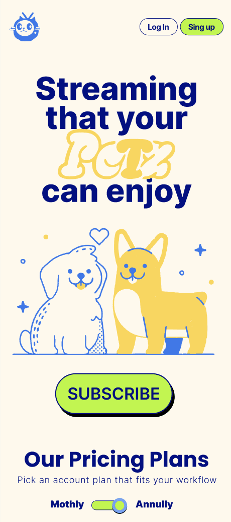 The project was inspired by my dog Laika, an Australian Shepherd. Whenever I had to leave her alone at home, I felt a sense of guilt common to many pet owners — the feeling of abandoning a companion who depends on you. I would often leave YouTube videos playing to distract her, which led me to imagine how comforting and reassuring it would be if a dedicated streaming service for animals existed. Petz was born from this emotional experience and from the desire to ease separation anxiety for both pets and their owners.